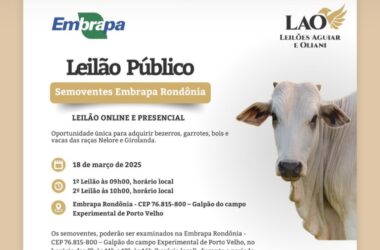 Em um evento que promete movimentar o setor agropecuário, a Embrapa Rondônia realizará um leilão público, tanto online quanto…