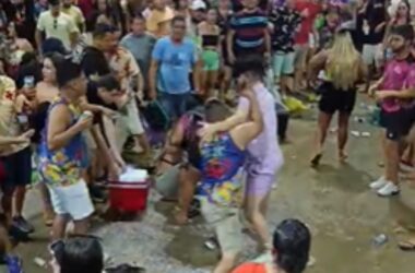 Uma confusão foi registrada no Carnaval de Mâncio Lima neste domingo, 2. Dois homens trocam socos na Alameda das Águas. Imagens mostram que os envolvidos