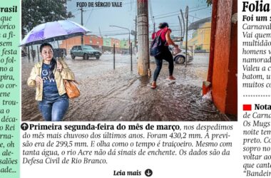 O nível do Rio Acre continua em queda na capital acreana. No dia 2 de março, o rio começou o dia marcando 11,34 metros às