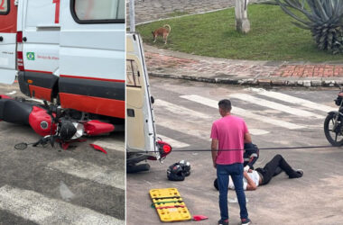 Um acidente de trânsito envolvendo uma viatura do Samu e uma motocicleta foi registrado na manhã deste domingo, 2, próximo ao Posto do Agricultor, no