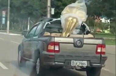 Uma estatueta gigante do Oscar foi vista sendo transportada na traseira de uma picape pelas ruas de Palmas e viralizou na internet. Nas redes sociais,