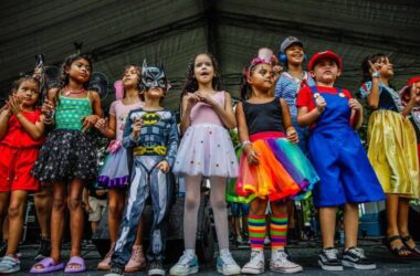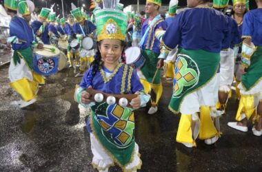 Laura Barros, de 7 anos foi uma das compositoras do samba de enredo “A vida é uma feira”, que embalou a agremiação a Embaixada de Samba…