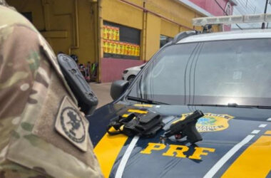 A Polícia Rodoviária Federal (PRF) prendeu um homem por porte ilegal de arma de fogo de uso permitido e apreendeu um menor de idade por