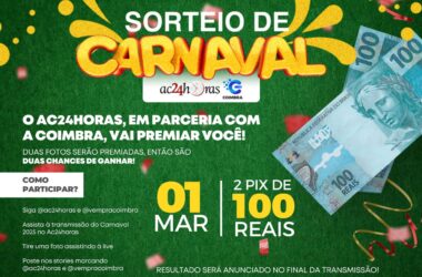 O site ac24horas, em parceria com a loja Coimbra, promove na noite deste sábado, 1, o segundo sorteio para os foliões que acompanharem a transmissão