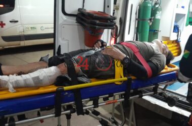 Um entregador ficou gravemente ferido na tarde desta sexta-feira (28) após colidir com uma carrocinha estacionada na Rua Alexandre Esteves Filho, no bairro Satel, em