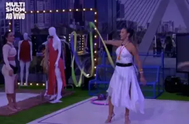 Durante a festa da líder Renata, 33, os confinados demonstraram suas habilidades ao se apresentarem com uma fita. O que aconteceu A bailarina foi surpreendida