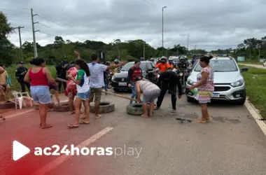 Após mais de duas horas de bloqueio, moradores da comunidade Vila Maria, localizada na estrada do Aeroporto Internacional de Rio Branco, liberaram a BR-364 nos