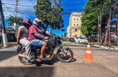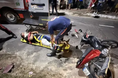 Duas mulheres ficaram feridas em um acidente entre um carro e uma motocicleta no cruzamento das Avenidas Rodrigues Alves e 28 de Setembro, no centro