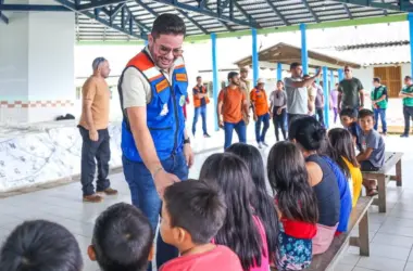 O governador do Acre, Gladson Camelí, visitou na tarde deste sábado, 22, as famílias indígenas que estão abrigadas na Escola Madre Adelgundes Becker, em Cruzeiro