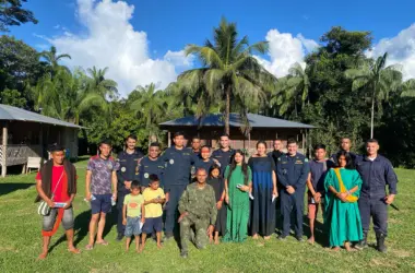 Com o Navio de Assistência Hospitalar “Doutor Montenegro” atracado em Marechal Thaumaturgo, pela primeira vez, mulheres da etnia Ashaninka, da Terra Indígena Apiwtxa, do Rio
