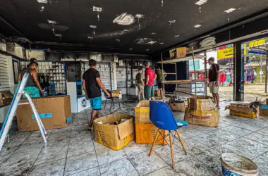 O incêndio que ocorreu na noite deste sábado (29) em uma loja de acessórios eletrônicos no Calçadão da Benjamin Constant, em Rio Branco, causou danos
