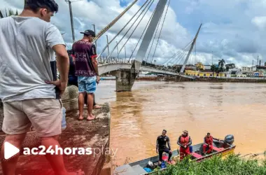 As buscas por Roger da Silva Matos, jovem de 18 anos que desapareceu após ser visto se afogando no rio Acre, foram retomadas na manhã