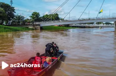 As buscas por Roger Matos dos Santos, 18 anos, que desapareceu após ser visto se afogando no rio Acre, foram retomadas na manhã deste domingo