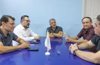 O senador Alan Rick (UB) se reuniu, na manhã desta sexta-feira (14), com membros da executiva estadual do MDB, liderados pelo presidente do partido, Vagner