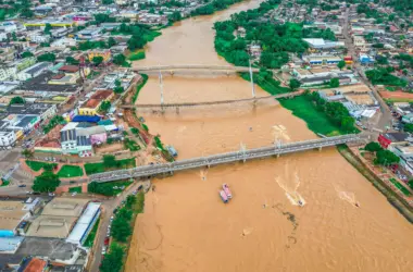 O Rio Acre, que atingiu 14,21 metros às 05h55 desta quarta-feira, 12, segue apresentando sinais de diminuição, segundo o boletim mais recente da Defesa Civil