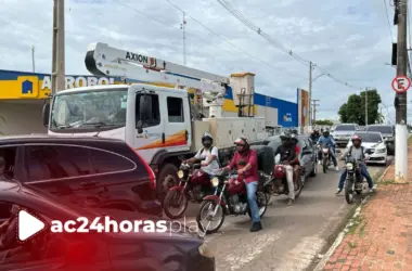 O trânsito ficou congestionado na manhã desta terça-feira, 1, após um acidente na Avenida Ceará, no cruzamento com a Rua Osmar Sabino, em Rio Branco.