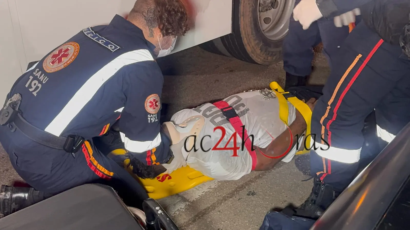 Um acidente envolvendo duas motocicletas deixou um homem ferido na noite de sábado (12), na Avenida Ceará, região central de Rio Branco. A vítima, identificada como Erivaldo Souza da Silva, de 35 anos, foi encontrada desacordada após a colisão e precisou ser socorrida pelo Serviço de Atendimento Móvel de Urgência (Samu).