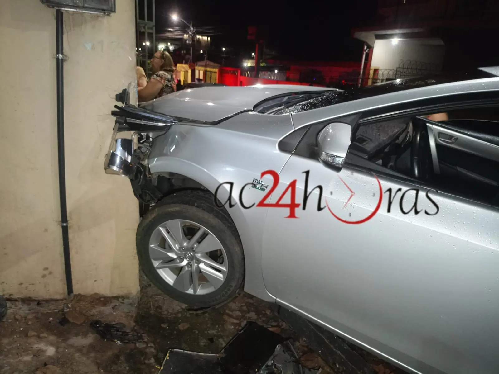 Uma colisão entre dois veículos mobilizou equipes de trânsito e chamou a atenção de moradores do bairro Ivete Vargas, em Rio Branco, na noite desta terça-feira (22). O acidente ocorreu no cruzamento das ruas São José e Belo Horizonte e envolveu um Toyota Corolla prata e um Fiat Argo branco.