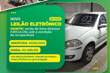 O governo do Acre, por meio da Secretaria de Estado de Administração (Sead), realizará no dia 30 de junho de 2025, das 8h às 13h