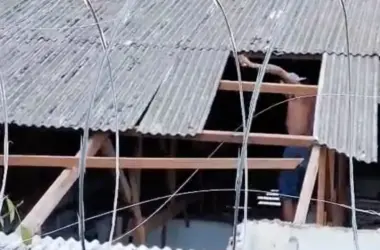 Imagens obtidas pelo ac24horas mostram um grupo de homens arrancando telhas do prédio onde funcionava o antigo Centro POP, em Rio Branco, na rua do