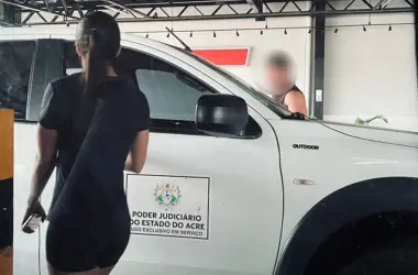Uma caminhonete Mitsubishi branca, de placa QWM9G07, pertencente ao Poder Judiciário do Estado do Acre (PJAC), foi flagrada sendo utilizada para fins particulares no estacionamento