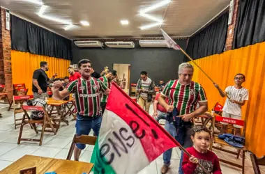 Torcedores do Fluminense em Rio Branco se reúnem nesta segunda-feira (30) em um bar para assistir à transmissão da partida do clube carioca contra a
