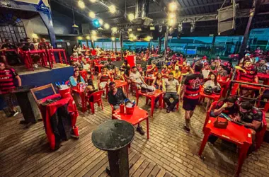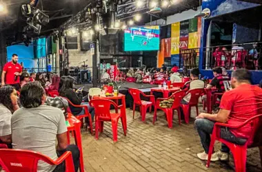 A torcida do Clube de Regatas do Flamengo esteve reunida na noite desta terça-feira (24), em Rio Branco, para assistir a partida contra o Los