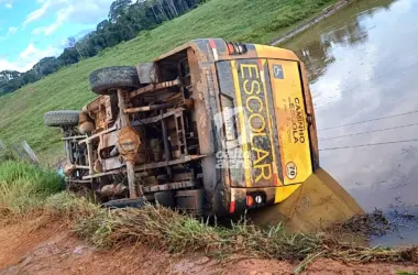 Na tarde dessa segunda-feira, 23, um ônibus escolar da rede estadual caiu dentro de um açude, no Ramal do 19, zona rural de Brasiléia, no