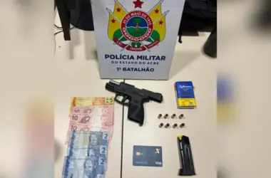 A Polícia Militar do Acre (PMAC) prendeu um homem por furtar uma arma de fogo e traficar entorpecentes. A equipe policial agiu rápido e localizou