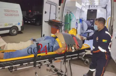 Um acidente de trânsito envolvendo um carro e uma motocicleta deixou o motociclista de aplicativo Marcos Felipe Feitosa, de 35 anos, ferido na noite desta
