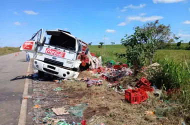 Um caminhão que transportava refrigerantes e cervejas tombou na manhã desta sexta-feira (13), na BR-317, nas proximidades do restaurante Araxá, no município de Capixaba, interior