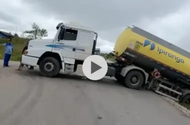 Uma carreta com combustível atravessada na BR-364, na altura do Rio Liberdade, entre Cruzeiro do Sul e Tarauacá, está impedindo o tráfego de veículos no