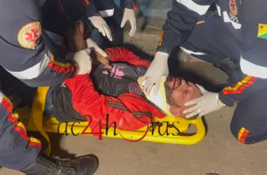 O motociclista Marcos Alexandre dos Anjos, de 51 anos, ficou gravemente ferido na noite desta terça-feira (10) após se envolver em um acidente provocado por