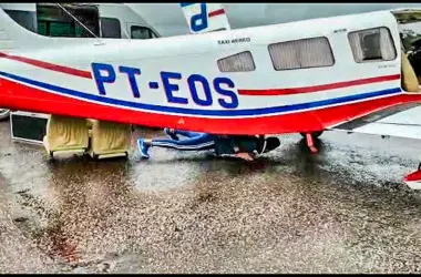 O avião de modelo EMB-720C, de prefixo PT-EOS, que transportava cargas de Feijó, no interior do Acre, para o município de Envira, no Amazonas, e