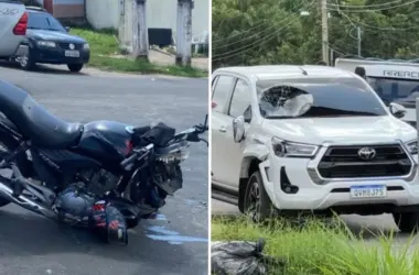 Um acidente entre uma caminhonete e uma motocicleta no portal da Avenida Mâncio Lima, em Cruzeiro do Sul, terminou com o motociclista ferido e levado