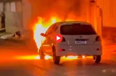 Na noite desta terça-feira (10), um carro de passeio modelo Peugeot 206 pegou fogo e explodiu no bairro Castelo Branco, em Rio Branco, na rua