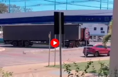 Um caminhão de grande porte ficou “entalado” ao tentar passar por baixo do elevado Beth Bocalom, na Estrada Dias Martins, em Rio Branco, na manhã