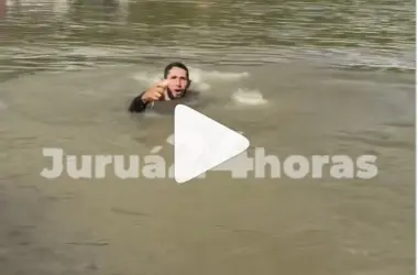 Um vídeo que circula nas redes sociais mostra um homem afirmando que há tanto peixe no Rio Juruá que é possível pescá-los apenas com as