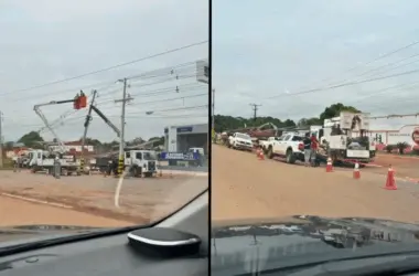 Um vendaval causou a derrubada de postes de energia no Segundo Distrito de Rio Branco, na tarde desta sexta-feira (5), deixando clientes de ao menos