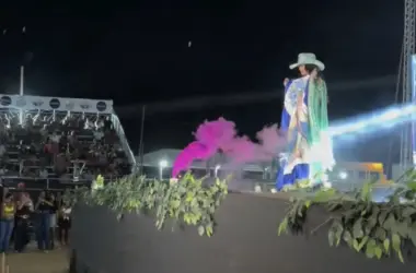 A candidata a Rainha do Rodeio da Expoxapuri, Nayama Marynho, de 20 anos, surpreendeu o público ao realizar um chá revelação no palco do evento,
