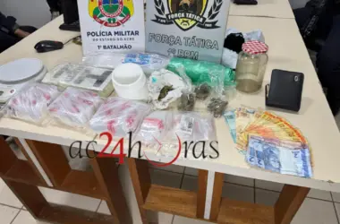 A Força Tática do 1º Batalhão da Polícia Militar prendeu, na tarde desta quinta-feira (4), Tiago Braga da Silva, de 25 anos, acusado de tráfico