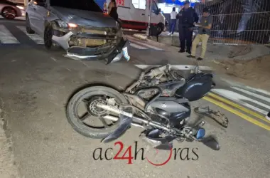 Rodrigo Freitas de Souza, de 24 anos, ficou gravemente ferido após colidir sua motocicleta Yamaha Factor 150 preta, placa QWN 5C42, contra um carro modelo