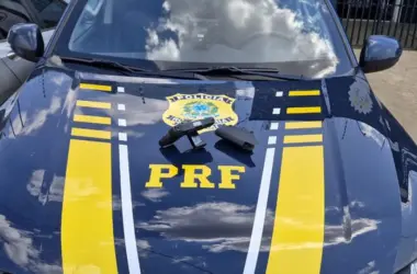 A Polícia Rodoviária Federal (PRF) prendeu, no último sábado (30), um homem por porte ilegal de arma de fogo de uso restrito durante fiscalização na
