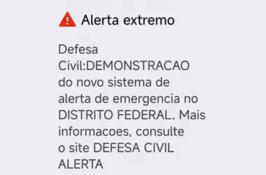 A Defesa Civil nacional enviou neste sábado (27) uma mensagem para o celular dos moradores do Distrito Federal e de mais 12 municípios de Goiás,
