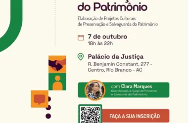 Nos dias 7 e 8 de outubro, Rio Branco será palco do projeto “Andanças do Patrimônio”, iniciativa do Instituto do Patrimônio Histórico e Artístico Nacional