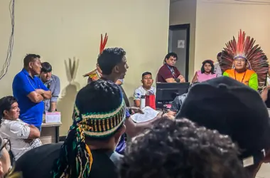 Um grupo de lideranças indígenas das regiões do Alto e Baixo Acre e Alto e Baixo Amazonas, que ocupa na noite desta quarta-feira (24) a