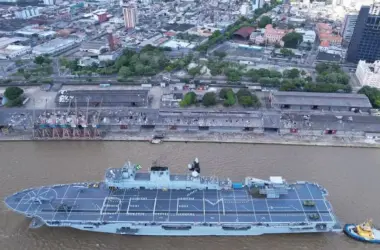O navio-aeródromo multipropósito (NAM) Atlântico, maior navio de guerra da América Latina, atraca nesta quinta-feira (25) no Porto de Belém. A embarcação estará aberta à