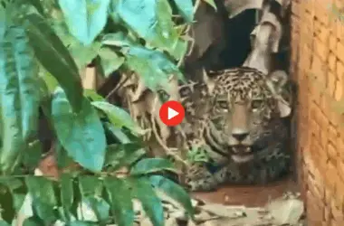 Um vídeo que circula nas redes sociais nesta segunda-feira, 22, mostra uma onça que apareceu no quintal de uma residência…