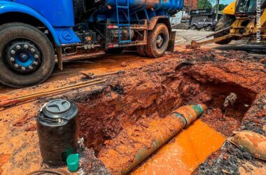 O abastecimento de água foi interrompido nesta segunda-feira, 29, nas regionais do Calafate e do Ipê devido ao rompimento de uma adutora de 400 milímetros,