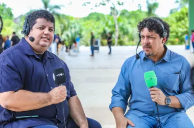 Durante a cobertura do Exporta Mais Amazônia 2025 – Acre, realizado no Centro de Convenções da Ufac, os jornalistas Marcos Venícios e Itaan Arruda chamaram